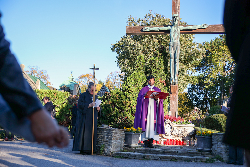 Schon früh begann die Kirche "alle Heiligen" an einem einzigen Festtag zu feiern - zusätzlich zu den Feiern der einzelnen Märtyrer und der lokalen Heiligen. Gedacht wird aber auch aller "verstorbenen Brüder und Schwestern, die schon zur Vollendung gelangt sind", wie es im Messbuch heißt. So ist auch der Zusammenhang mit dem Fest "Allerseelen" gegeben, dem Gedenktag aller verstorbenen Gläubigen. Aber: Allerseelen ist kein Trauertag! Sondern Ausdruck der Verbundenheit mit den Verstorbenen und der Hoffnung auf Auferstehung.