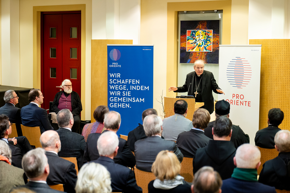 Am Montagabend fand im Curhaus am Wiener Stephansplatz die feierliche Amtsübergabe von Alfons Kloss an den neuen Pro Oriente-Präsidenten Clemens Koja statt, der sein Amt bereits am 1. Jänner 2025 angetreten hatte. Kardinal Christoph Schönborn würdigte dabei die Arbeit der Stiftung, insbesondere ihre Flexibilität in Zeiten ökumenischer Herausforderungen, und betonte die Bedeutung persönlicher Begegnungen für den theologischen Fortschritt. Zudem erinnerte Schönborn an den Gründer von Pro Oriente, Kardinal Franz König, der die Stiftung mit dem Ziel gegründet hatte, Brücken in den Osten zu bauen. Wir waren mit der Kamera dabei.