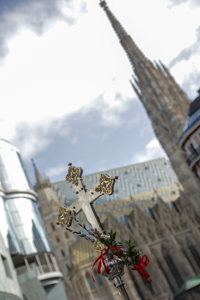 Traditionell werden am Palmsonntag, eine Woche vor Ostern, in der Wiener Innenstadt die Palmkätzchen von Kardinal Christoph Schönborn gesegnet. Die Palme ist ein Symbol des Sieges und steht im Christentum für das ewige Leben. Wir waren mit der Kamera dabei.